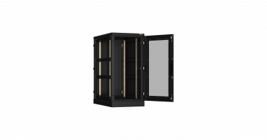 Дверь со вставкой из ударопрочного тонированного в массе стекла дает хороший обзор установленного в шкафу оборудования.