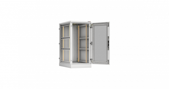В базовой комплектации шкафа идут 4 монтажных 19” профиля, регулируемых по глубине. Для удобства монтажа и обслуживания установленного в шкафу оборудования конструкцией шкафа предусмотрен доступ с 4 сторон: через переднюю и заднюю двери, а также боковые съемные стенки. Боковые стенки шкафа утоплены внутрь каркаса, запираются на защелки и замки с ключами. Передняя и задняя двери имеют ручку с замком. Дверь можно перевесить, изменив сторону открытия двери. Угол открытия дверей — 180 градусов. Для обеспечения эффективного теплообмена и поддержания необходимого температурного режима, в крышу и основание шкафа могут быть установлены вентиляторные блоки. Наличие перфорации также повышает эффективность теплообмена. Ввод кабелей осуществляется через крышу или основание шкафа. Все части шкафа соединены в единый контур проводами заземления. А между собой шкафы могут быть состыкованы с помощью комплекта для соединения. Кроме того, возможна установка шкафа на регулируемые опоры и ролики одновременно.