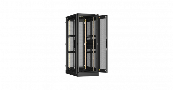 Дверь одностворчатая с оправой под стекло на раме с замком и петлями для шкафа серии TFA 33U шириной 800мм, черный, пара направляющих.