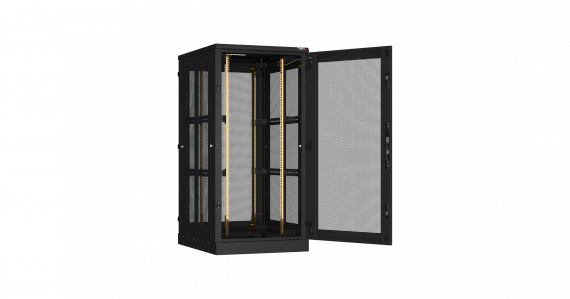 Напольный шкаф 19", 33U, стеклянная дверь, боковые цельнометаллические стенки и задняя дверь Ш800хВ1660хГ800мм, в разобранном виде, черный