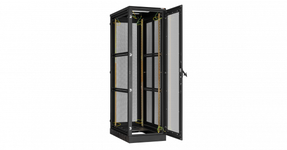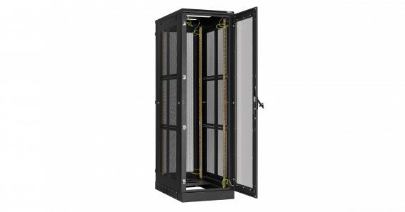 Напольный шкаф 19", 42U, стеклянная дверь, перфорированные стенки и задняя дверь, Ш600хВ2060хГ1000мм, в разобранном виде, черный
