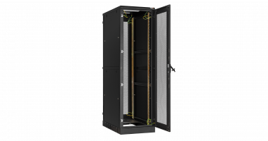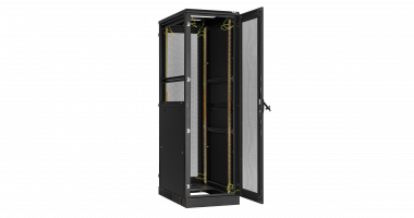 Напольный шкаф 19", 42U, перфорированные одно и двухстворчатые двери, цельнометаллические двухуровневые стенки , Ш600хВ2060хГ1000мм, в разобранном виде, черный