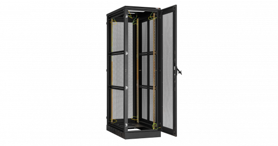 Напольный шкаф 19", 42U, перфорированные стенки и двери, Ш600хВ2060хГ1000мм, в разобранном виде, черный