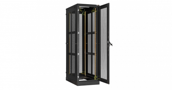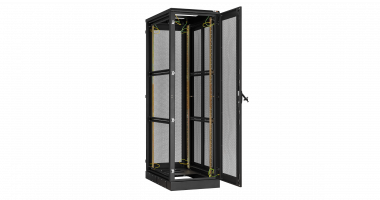 Напольный шкаф 19", 42U, перфорированная двустворчатая дверь, перфорированные двухуровневые стенки Ш600хВ2060хГ1000мм, в разобранном виде, черный