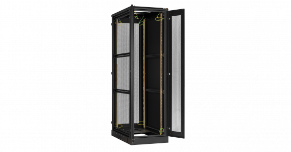 Напольный шкаф 19", 42U, двухстворчатые перфорированные двери, перфорированные стенки Ш600хВ2060хГ1000мм, в разобранном виде, черный