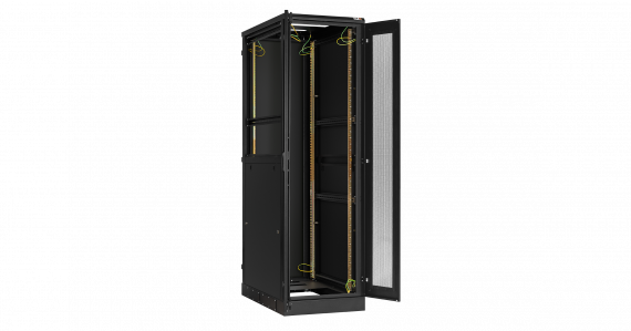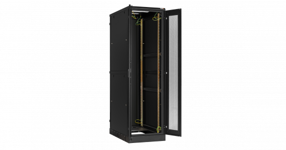 Напольный шкаф 19", 42U, двухстворчатые перфорированные двери, двухуровневые стенки Ш600хВ2060хГ1200мм, в разобранном виде, черный