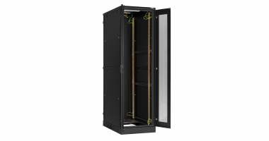 Напольный шкаф 19", 42U, стеклянная дверь, двухуровневые перфорированне стенки и двухстрочатая перфорированная задняя дверь Ш600хВ2060хГ800мм, в разобранном виде, черный