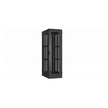 Дверь одностворчатая перфорированная на раме с замком и петлями для шкафа серии TFA 42U шириной 800мм, черная, пара направляющих.