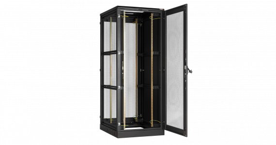 Напольный шкаф 19", 42U, перфорированная одностворчатая передняя дверь, перфорированная двухстворчатая задняя дверь, металлические стенки, Ш800хВ2060хГ1000мм, в разобранном виде, черный