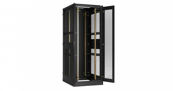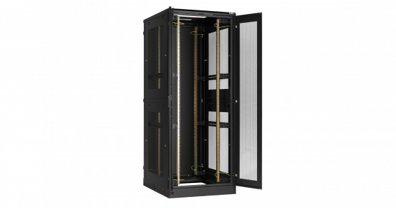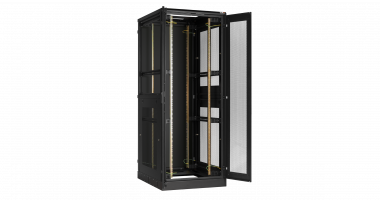 Напольный шкаф 19", 42U, перфорированные двухстворчатые двери, перфорированные двухуровневые стенки, Ш800хВ2060хГ1000мм, в разобранном виде, черный