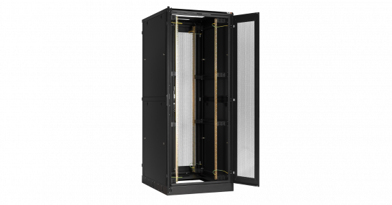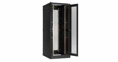 Напольный шкаф 19", 42U, перфорированные двухстворчатые двери, цельнометаллические двухуровневые стенки, Ш800хВ2060хГ1000мм, в разобранном виде, черный