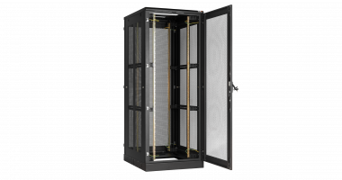 Напольный шкаф 19", 42U, дверь со стеклом, перфорированная дверь, металлические перфорированные двухуровневые стенки, Ш800хВ2060хГ1200мм, в разобранном виде, черный