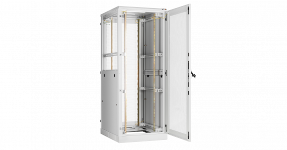 Это гарантирует высокую надежность, а глубина 1000 и 1200 мм позволяет размещать даже тяжелое оборудование. Базовая комплектация включает 4 монтажных 19” профиля с регулируемой глубиной. Для удобства обслуживания шкаф имеет доступ с 4 сторон: передней, задней и боковых съемных стенок, которые запираются на защелки и замки с ключами.