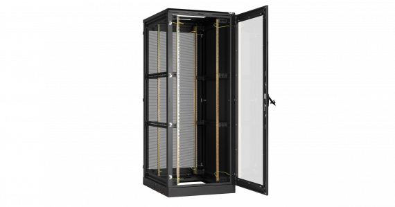 Напольный шкаф 19", 42U, передняя дверь стекло, задняя дверь перфорированная, цельнометаллические стенки, Ш800хВ2060хГ800мм, в разобранном виде, черный