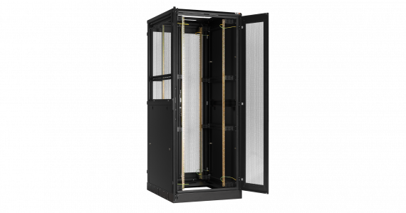 Напольный шкаф 19", 42U, перфорированные двухстворчатые двери, двухуровневые металлические стенки, Ш800хВ2060хГ800мм, в разобранном виде, черный