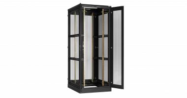 Напольный шкаф 19", 42U, перфорированные двухстворчатые двери, перфорированные стенки, Ш800хВ2060хГ800мм, в разобранном виде, черный