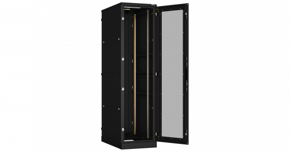 Напольный шкаф 19", 47U, дверь со вставкой из стекла, перфорированные двухстворчатые двери, двойные боковые стенки, Ш600хВ2280хГ800мм, в разобранном виде, черный