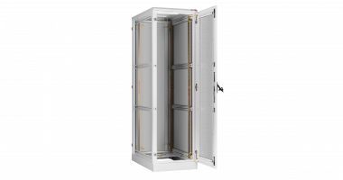 В базовой комплектации шкафа идут 4 монтажных 19” профиля, регулируемых по глубине. Для удобства монтажа и обслуживания установленного в шкафу оборудования конструкцией шкафа предусмотрен доступ с четырех сторон, через переднюю и заднюю дверь, боковые легкосъемные стенки. Боковые стенки шкафа утоплены внутрь каркаса, запираются на защелки и замки с ключами. Передняя и задняя дверь имеет ручку с замком. Передняя/задняя дверь может быть цельнометаллической, перфорированной или со вставкой из ударопрочного, тонированного в массе стекла. Имеется возможность установить левое/правое открытие двери на этапе сборки, либо же перенавесить двери после сборки шкафа. Угол открытия дверей — 180 градусов. Боковые стенки доступны в сплошном или перфорированном исполнении, а также в цельном либо в двухуровневом исполнении. Для обеспечения эффективного теплообмена и поддержания необходимого температурного режима, в крышу и основание шкафа могут быть установлены вентиляторные блоки. Наличие перфорации также повышает эффективность теплообмена. Ввод кабелей осуществляется через крышу или основание шкафа. Все части шкафа соединены в единый контур проводами заземления. Шкафы могут быть состыкованы между собой с помощью комплекта для соединения. Возможна установка шкафа на регулируемые опоры и ролики одновременно.