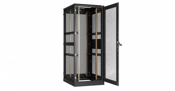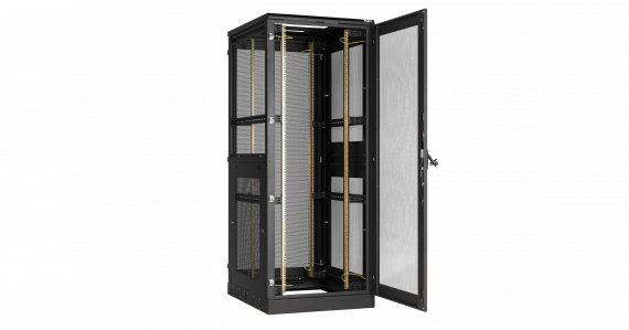 Напольный шкаф 19", 47U, перфорированные двери, перфорированные двухуровневые стенки, Ш800хВ2280хГ1000мм, в разобранном виде, черный
