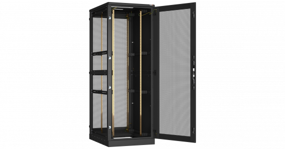 Напольный шкаф 19", 47U, перфорированные одно и двухстворчатые двери, металлические двухуровневые стенки, Ш800хВ2280хГ1200мм, в разобранном виде, черный