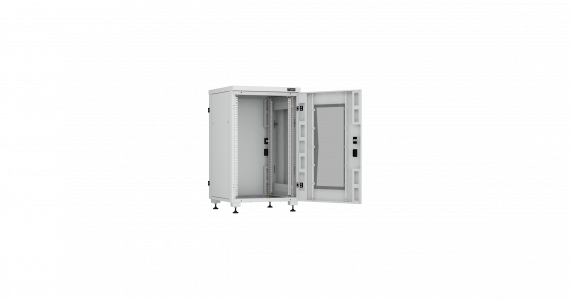 Дверь одностворчатая с оправой под стекло на раме с замком и петлями для шкафа серии TFI 18U шириной 600мм, серый, пара направляющих.