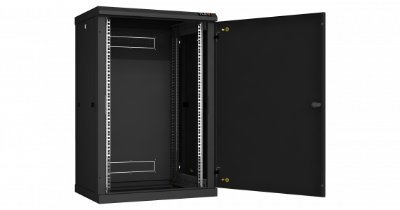 Дверь одностворчатая цельнометаллическая на раме с замком и петлями для шкафа серии TFI 18U шириной 600мм, черный, пара направляющих.