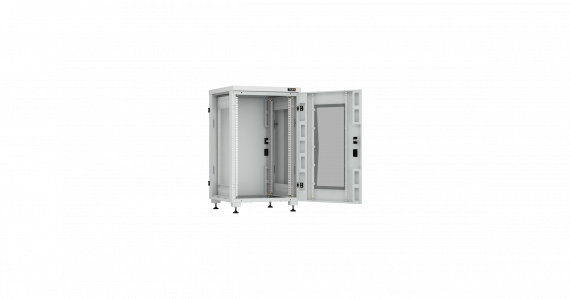 Спереди и сзади имеется дверь. Слева и справа шкафа имеются съемные панели. Ввод кабеля осуществляется через основание шкафа или через крышу, через кабельные вводы, которые закрыты выламываемыми заглушками. Количество кабельных вводов: в основании - 2 шт (выламываемый), в крыше — 1 шт (выламываемый). Размер отверстий кабельного ввода составляет 270х56мм. Имеются посадочные места в крыше под установку вентиляторного блока. На выбор, можно установить вентиляторный блок на 2 вентилятора или вентиляторный блок на 4 вентилятора. Размеры посадочного места под установку вентиляторного блока в крышу и дно шкафа составляет 270х270мм. Передняя дверь открывается на угол до 180 градусов. Боковые стенки шкафа являются съемными, за счет чего доступ к установленному в шкаф оборудованию может осуществляться с четырёх сторон.