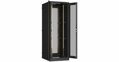 Дверь одностворчатая цельнометаллическая на раме с замком и петлями для шкафа серии TFI 24U шириной 600мм, пара направляющих, черный RAL9005.