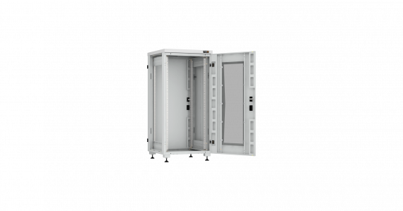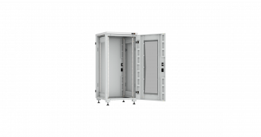 Спереди и сзади имеется дверь. Слева и справа шкафа имеются съемные панели. Ввод кабеля осуществляется через основание шкафа или через крышу, через кабельные вводы, которые закрыты выламываемыми заглушками. Количество кабельных вводов: в основании - 2 шт (выламываемый), в крыше — 1 шт (выламываемый). Размер отверстий кабельного ввода составляет 270х56мм. Имеются посадочные места в крыше под установку вентиляторного блока. На выбор, можно установить вентиляторный блок на 2 вентилятора или вентиляторный блок на 4 вентилятора. Размеры посадочного места под установку вентиляторного блока в крышу и дно шкафа составляет 270х270мм. Передняя дверь открывается на угол до 180 градусов. Боковые стенки шкафа являются съемными, за счет чего доступ к установленному в шкаф оборудованию может осуществляться с четырёх сторон.