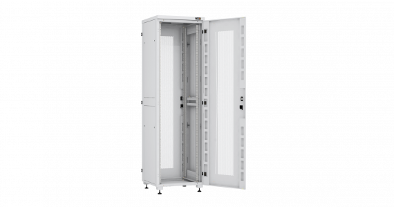 Напольный шкаф серии Lite II 19", 42U, перфорированные передняя и задняя двери с ручкой и замком, боковые двухуровневые цельнометаллические панели, оснащены замками, Ш600хВ2042хГ600мм, в разобранном виде, серый RAL7035
