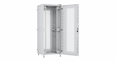 Дверь одностворчатая цельнометаллическая на раме с замком и петлями для шкафа серии TFI 47U шириной 600мм, серый, пара направляющих.