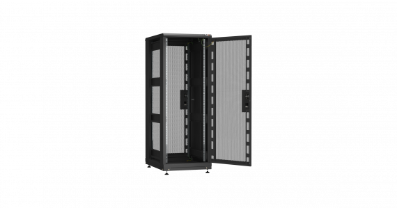 Напольный шкаф 19", 42U, двери перфорированные, одностворчатая и двустворчатая, металлические стенки, Ш600хВ2010хГ1000мм, в разобранном виде, черный