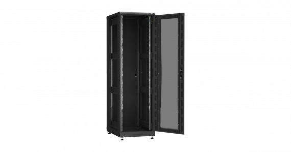Напольный шкаф 19", 42U, двустворчатые перфорированные двери, металлические стенки, Ш800хВ2010хГ800мм, в разобранном виде, черный