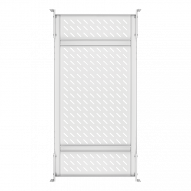 Усиленная стационарная полка предназначена для установки или поддержки тяжелого оборудования в напольных телекоммуникационных шкафах и стойках. Снизу полка укреплена продольными и поперечными усиливающими ребра. Поверхность полки имеет перфорацию для лучшей вентиляции оборудования. Крепление осуществляется на двух парах 19" направляющих в четырех точках. Полка устанавливается в напольные шкафы и стойки в соответствии с таблицей совместимости аксессуаров.