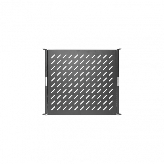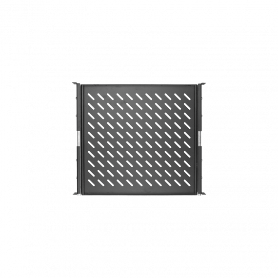 Выдвижная полка предназначена для установки или поддержки тяжелого оборудования в напольных телекоммуникационных шкафах и стойках, а также для оборудования, обслуживание которого подразумевает регулярное извлечение его из шкафа. В таком случае, выдвижная конструкция полки значительно облегчает доступ к необходимому оборудованию. Поверхность полки имеет перфорацию для лучшей вентиляции оборудования. Крепление осуществляется на двух парах 19" направляющих в четырех точках. Полка глубиной 400 мм, устанавливается в напольные шкафы и стойки, настенные шкафы в соответствии с таблицей совместимости аксессуаров.