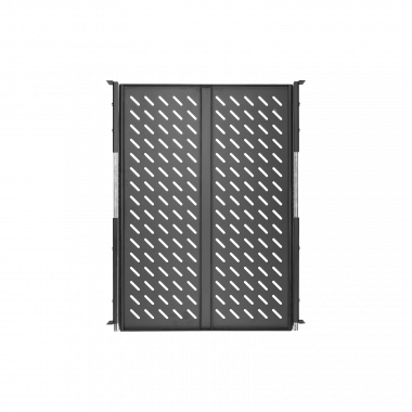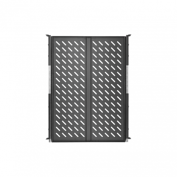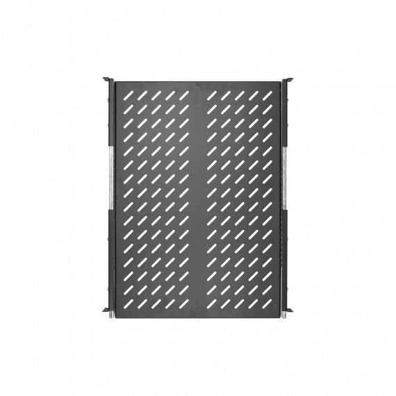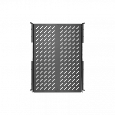 Выдвижная полка предназначена для установки или поддержки тяжелого оборудования в напольных телекоммуникационных шкафах и стойках, а также для оборудования, обслуживание которого подразумевает регулярное извлечение его из шкафа. В таком случае, выдвижная конструкция полки значительно облегчает доступ к необходимому оборудованию. Поверхность полки имеет перфорацию для лучшей вентиляции оборудования. Крепление осуществляется на двух парах 19" направляющих в четырех точках. Полка глубиной 600 мм, устанавливается в напольные шкафы и стойки в соответствии с таблицей совместимости аксессуаров.