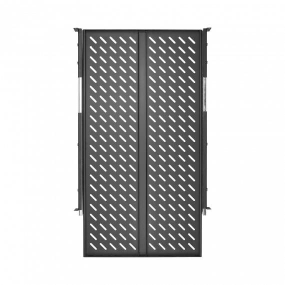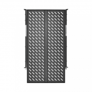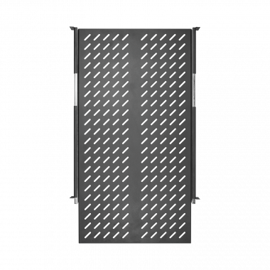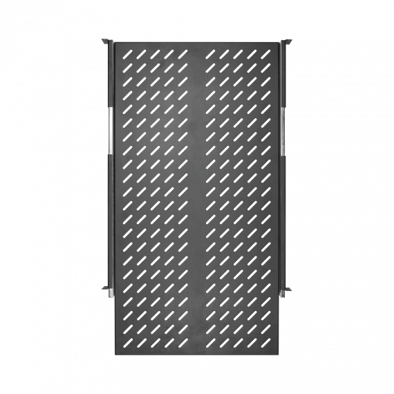 Выдвижная полка предназначена для установки или поддержки тяжелого оборудования в напольных телекоммуникационных шкафах и стойках, а также для оборудования, обслуживание которого подразумевает регулярное извлечение его из шкафа. В таком случае, выдвижная конструкция полки значительно облегчает доступ к необходимому оборудованию. Поверхность полки имеет перфорацию для лучшей вентиляции оборудования. Крепление осуществляется на двух парах 19" направляющих в четырех точках. Полка глубиной 800 мм, устанавливается в напольные шкафы и стойки в соответствии с таблицей совместимости аксессуаров.