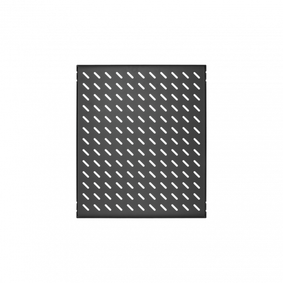 Стационарная полка увеличенной ширины предназначена для установки и поддержки тяжелого оборудования. Полка устанавливается в напольные шкафы серии TFA, TFM, TFI-R и настенные шкафы TWI-R, TWC-R в соответствии с разделом совместимости аксессуаров. Поверхность полки имеет перфорацию для лучшей вентиляции оборудования. Крепление осуществляется на двух парах 19" направляющих в четырех точках по боковым сторонам полки.