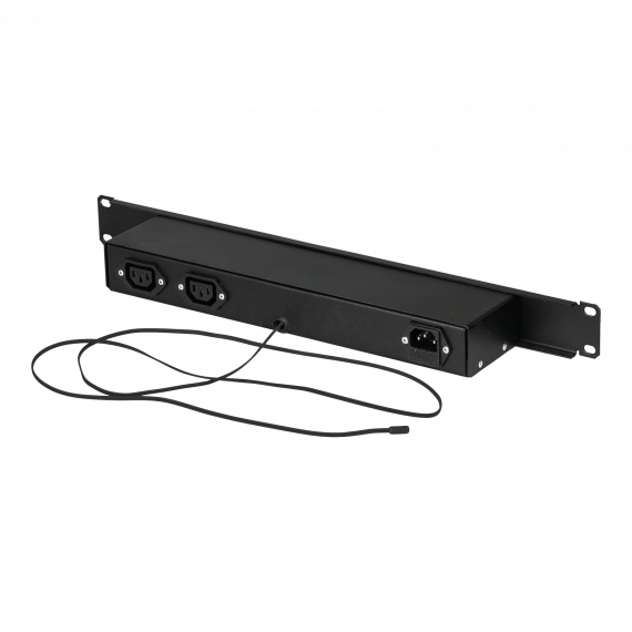 Панель с терморегулятором — это система, предназначенная для мониторинга температуры внутри шкафа и управления вентиляторными устройствами. Панель устанавливается в монтажные шкафы, имеющие 19” вертикальные направляющие. К панели с терморегулятором можно подключить до двух вентиляторных устройств. Управление работой вентиляторных устройств производится терморегулятором с подключенным к нему датчиком температуры. В зависимости от настроек терморегулятора, контроллер включает или выключает вентиляторные устройства. Контроллер оснащен информационным дисплеем и удобным интерфейсом для изменения настроек. Панель с терморегулятором выполнена в виде корпуса, предназначенного для установки на вертикальные 19’’ направляющие. Крепление производится с помощью винтов М6. Панель оснащена вводом питания с предохранителем и кнопкой для включения и выключения. Для подключения устройств используются розетки IEC 320 C14. Шнур датчика температуры имеет длину 1,5 метра.
