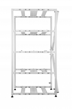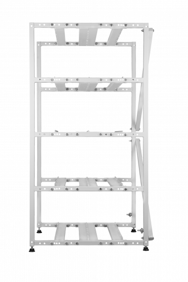 Стеллажи отличаются особо высокой прочностью, что позволяет размещать на них батареи большого веса. Конструкция с использованием балок и опор обеспечивает простой монтаж/демонтаж, что удобно при транспортировке и хранении.