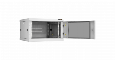 Настенный разборный шкаф TLK 19", 6U, стеклянная дверь, Ш600хВ370хГ600мм, 2 пары монтажных направляющих, серый