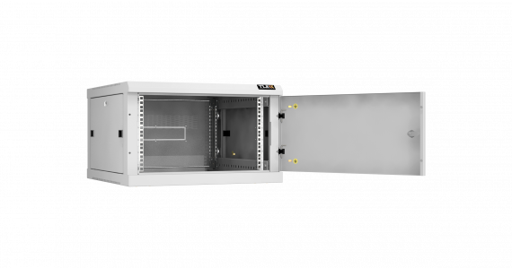 Настенный разборный шкаф TLK 19", 6U, металлическая дверь, Ш600хВ370хГ600мм, 2 пары монтажных направляющих, серый