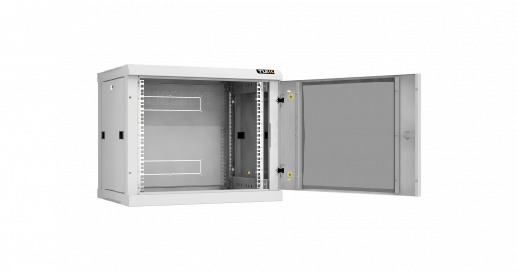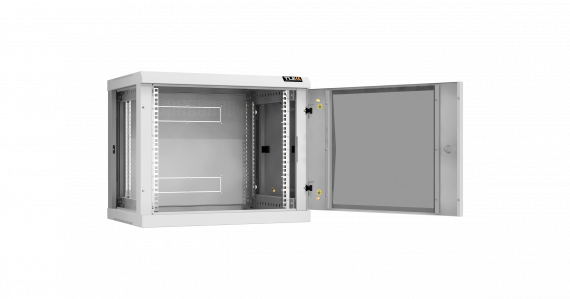Настенный разборный шкаф TLK 19", 9U, стеклянная дверь, Ш600хВ503хГ450мм, 2 пары монтажных направляющих, серый