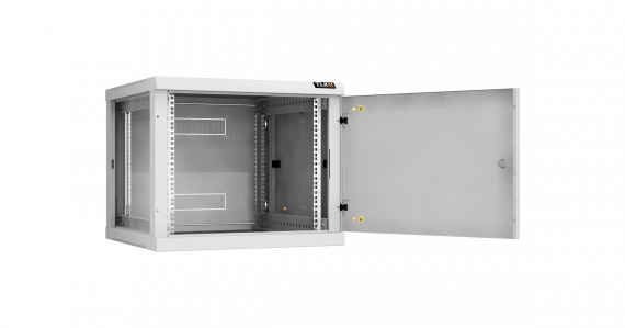 Настенный разборный шкаф TLK 19", 9U, металлическая дверь, Ш600хВ503хГ600мм, 2 пары монтажных направляющих, серый