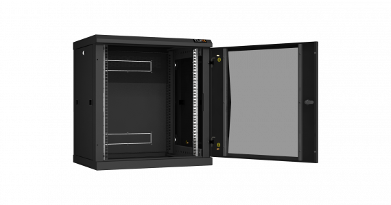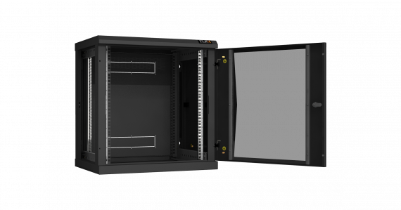 Настенный разборный шкаф TLK 19", 12U, стеклянная дверь, Ш600хВ636хГ450мм, 2 пары монтажных направляющих, черный