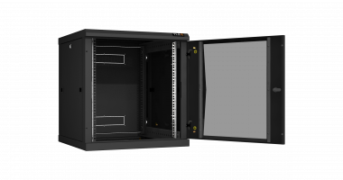 Настенный разборный шкаф TLK 19", 12U, стеклянная дверь, Ш600хВ636хГ600мм, 2 пары монтажных направляющих, черный