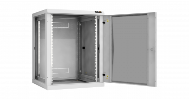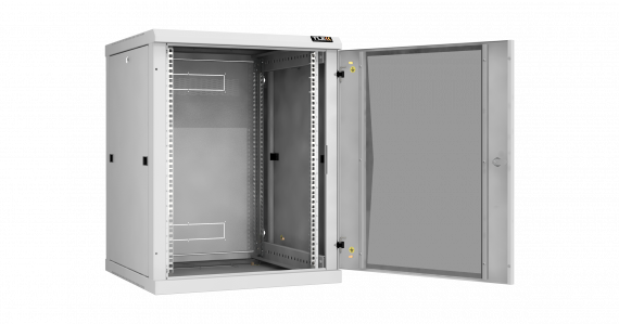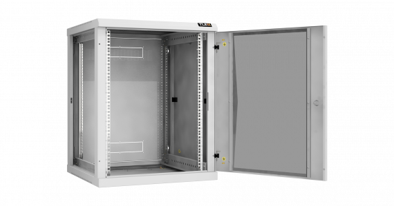 Настенный разборный шкаф TLK 19", 15U, стеклянная дверь, Ш600хВ770хГ600мм, 2 пары монтажных направляющих, серый