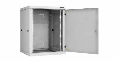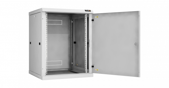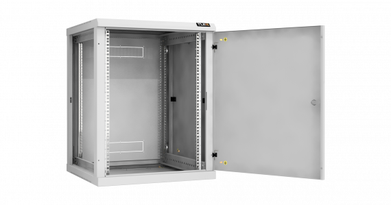 Настенный разборный шкаф TLK 19", 15U, металлическая дверь, Ш600хВ770хГ600мм, 2 пары монтажных направляющих, серый