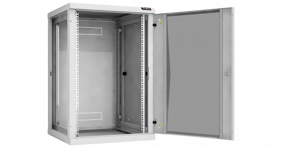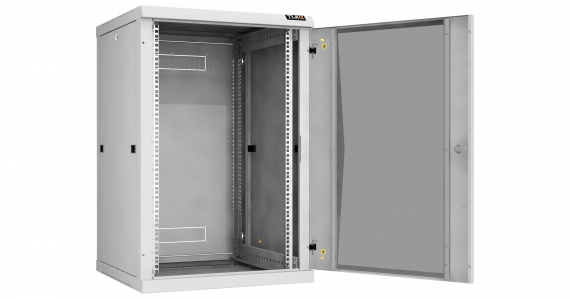 Настенный разборный шкаф TLK 19", 18U, стеклянная дверь, Ш600хВ904хГ600мм, 2 пары монтажных направляющих, серый