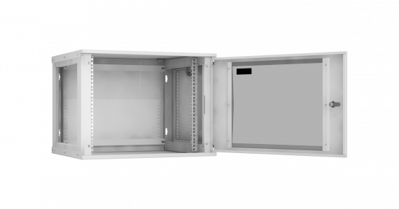 Настенные шкафы серии Lite (TWI) — это рациональное решение для размещения малых объемов телекоммуникационного оборудования, внутри жилых, офисных и производственных помещений. Настенные шкафы используют там, где применение напольных шкафов нецелесообразно. Например, при ограниченной площади помещения или при организации ЛВС с небольшим количеством рабочих мест. Особенностью настенных шкафов серии TWI является: надежная сборная конструкция, для удобства траспортировки, наличие съемных боковых стенок, двери с большим углом открытия позволяют при необходимости осуществлять доступ к оборудованию с трех сторон. Сборно-разборная конструкция шкафа, состоящая из малого набора конструктивных элементов обеспечивает надежный конструктив и простоту сборки. Крепление шкафа к стене осуществляется через монтажные отверстия в задней стенке шкафа. (Крепеж не входит в комплект поставки). Дверь шкафа снабжена замком и может быть выполнена из стального листа с перфорацией или со вставкой из тонированного в массе стекла. Имеется возможность навесить дверь с правой или с левой стороны. Угол открытия двери — 180 градусов. Для дополнительного удобства монтажа и обслуживания устанавливаемого оборудования, конструкцией предусмотрены легкосъемные боковые стенки, в закрытом положении фиксируются замками. Для установки оборудования стандарта 19", шкаф оснащен одной парой монтажных направляющих в комплекте с юнитовой наклейкой (шкаф глубиной 600 мм оснащается двумя парами монтажных направляющих). Глубину установки оборудования на монтажных направляющих внутри шкафа можно изменять с шагом 25 мм. Перфорация шкафа обеспечивает хорошую вентиляцию установленного оборудования. Возможна установка вентиляторного блока в крышу и основание шкафа, для этого предусмотрены выламываемые заглушки. В шкаф глубиной 350 мм устанавливаются вентиляторные блоки с 1-м вентилятором, а в шкаф глубиной 450 и 600 мм устанавливаются вентиляторные блоки с 2-я вентиляторами. Имеется по 1-му кабельному вводу в крыше и в основании шкафа, выполнены они в виде прямоугольных выламываемых заглушек 270х56 мм. Все токопроводящие части шкафа заземлены между собой. Антикоррозионное покрытие выполнено ударопрочной порошковой краской. Шкаф выполнен в системе несущих конструкций серии 482,6 мм ГОСТ 28601-90 (19-дюймовому стандарту IEC 297). Максимальная допустимая распределенная нагрузка на шкаф серии TWI составляет 40 кг. Степень защиты шкафа составляет IP 20. Шкаф поставляется в разобранном виде, в одной коробке.